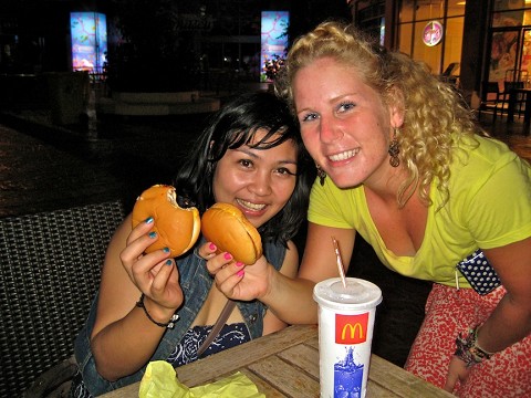 Apple and my teammate, Annee, celebrating her night of freedom with cheeseburgers!