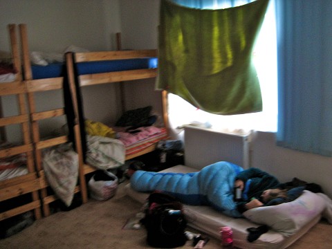 Our laundry inside because it's too cold outside. Our bedroom…with some fleas as snuggle buddies.