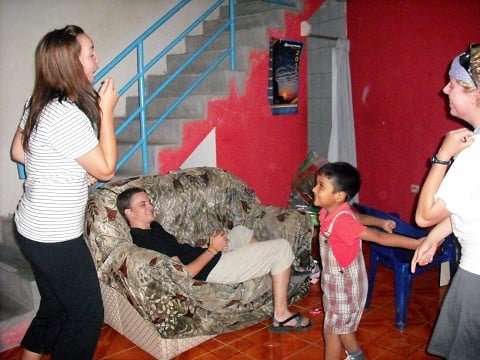Watching "Gladiator" on my laptop in the   Dance party with the Pastor's son, Jose Elias