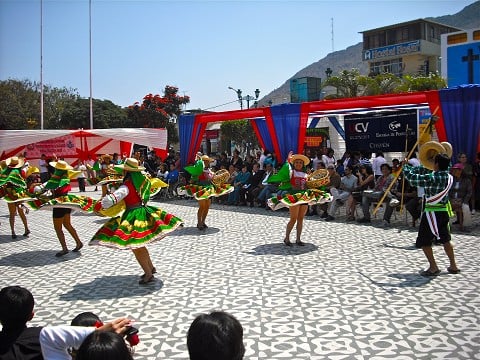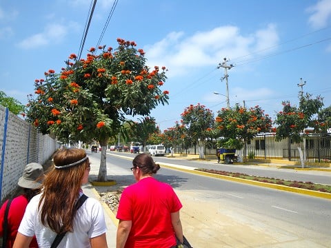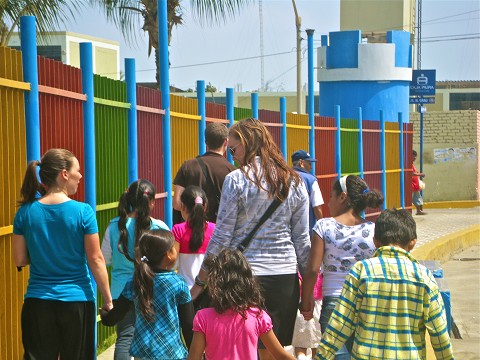 With a lady from the church and her grandson       The market outdoors in Chepen, Peru