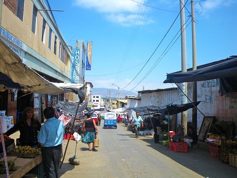 With a lady from the church and her grandson       The market outdoors in Chepen, Peru