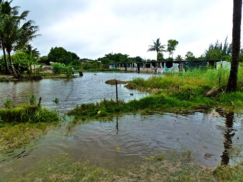 Because of the mass amounts of rain, the boy’s courtyard was flooded.