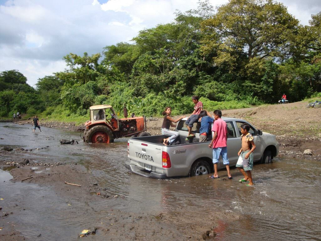 with a truck getting stuck in the mud in the middle of a river, and ended with