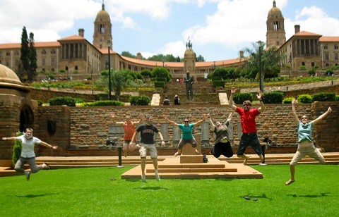 On Saturday we had a play date with Mike and Jeanine, they took us (again all squishing into the Land Rover, you learn how to clown car very quickly on the WR) to downtown Pretoria to see the Union Buildings (government buildings) and to play at the huge park that surrounds them.  I really wanted to be able to go into the buildings but apparently normal people are allowed in there, sad day. So to alleviate my sadness I did cartwheels in the grass and spent the day playing around with my teammates and Mike and Jeanine.  We walked around the gorgeous flower beds, stuck our feet in a fountain (probably illegal, I could have gone to jail, such a rebel), did our standard jumping picture, followed by Em’s designated handstand picture, and then walked down to the picnic table area and had a lovely picnic lunch.  Then the boys started playing around with some bouncy balls that Mike had brought along, so hilarious and sweet to all our boys playing together.