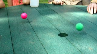 After my tree scare, we started playing a rather ridiculous game of trying to get the bouncy balls into the hole in the middle of our picnic table…yea riveting right?  But seriously we had so much fun. I’ll explain the steps: