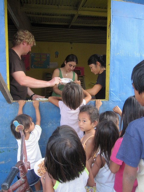 Amy Book played with the children and tried to tell them to get their bowls. You have to say it over and over….”PLEASE GET YOUR BOWL, PLEASE GET YOUR BOWL, PLEASE GET YOUR BOWL” and you try to tell their parents to get their children a bowl. Some follow and some never get their bowl. It’s painful how much you want these children to run and get a bowl so that they can eat for the day.