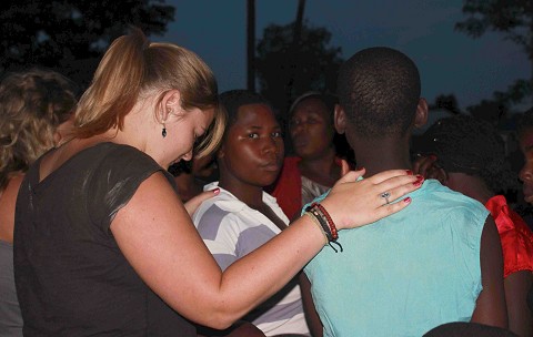 Although we were technically 15 minutes late to our own event, there were only a few girls waiting for us. Welcome to Africa time! The balloons were tossed on the floor and the girls went nuts. Slowly, more girls began to arrive and a fun game of red rover was arranged outside to move out things out of the stuffy church. This was the girls' first game of red rover ever, but they caught on quickly. By the end, strategy had been incorporated into the game