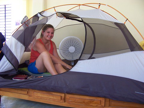 hot, and we have invented the fan-tent to help with heat and bugs!