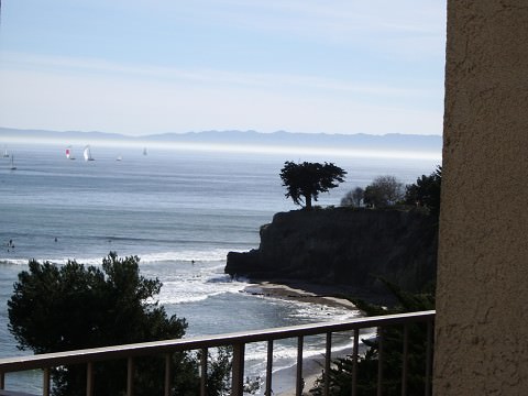This ALWAYS lifts my spirits and reminds me how lucky I am to get to live here and walk out my front door and see this and if I have to run, look at where I get to do it… so I go down the stairs and right at the bottom there is a family/group of about 8 men and boys all surfing and hanging out, they must have ranged from about 2 to 75 it was really cute, and one surfing looked just like my little brother, which also made me happy… so far this is of to a great SB start.