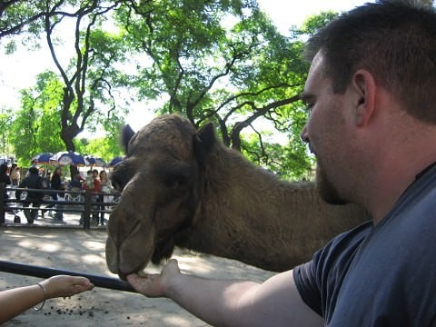 Once inside we headed straight for the bears… polar bears, spectacled bears, grizzly bears, Fozzie bears. And then off to the elephants, bison, camels, and llamas. This zoo is genius, as people pay to get in, and then they can pay more to feed all of the animals (except the carnivores)… so the zookeepers don’t have to put that much food together. The animals get fed all day long by happy little kids. And happy Scotts. How much fun to actually get to interact with the animals.