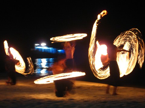 Once Scott and I finally found our little “rustic” cabana, we laid down to try to stop sweating. That didn’t work, so I got up, showered, and looked for the “OFers” (Old Foggies), Lynette and Jake. We made a date for dinner that night, and just enjoyed eachother’s company until debrief meetings commenced that night. After the meeting, we took in a fire twirling show right on the beach. Those young boys are very talented in their fire skills, as the youngest of them was about 13 years old. (If John Eldridge were there, he would have said that these boys were going through an initiation of sorts… testing themselves, as “cowboys”. If you want to know more about these stages of initiation, read