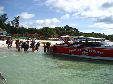 On August 28th we were whisked from the YWAM base in Bangkok, along with our debrief staff, on chartered buses, to a pier just south of the city. We were bound for Samet Island (or as the locals call it, Koh Samet). We hopped on speed boats with all of our gear, and traveled the crystal blue waves to the island. When we arrived, the boat dropped us off right on the beach. So, we touched our feet down in the beach waters (and got our clothes wet, of course). As the hotel was right on the beach, we picked up our room key and searched for our little stilt hut.