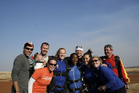 I was pretty nervous as we headed to the sky diving site that afternoon. I even wrote in my journal just in case anything happened. I had told myself I wanted to do something crazy and adventurous before turning 30 and my time was running out, literally…that mark will be here in 10 days. This was it. It was all or nothing. I did pretty good masking my fear until the door opened 11,000 ft in the air. Then I freaked out…both Dave and Shannon said the look on my face was priceless and they weren’t sure I would go. Good thing there was a man attached to my back, that didn’t give me a choice.