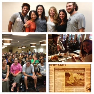 Our original team; last meal in America, aka Arby’s; there was an article about the World Race in USA Today; gathering for launch
