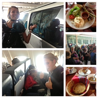 All our packs in one van while we rode in 3 other vans; our first Guatemalan meal; waiting for the vans; more food; sleeping on the plane