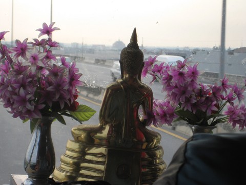 I also found it interesting that our charter bus had a buddha statue at the very front.