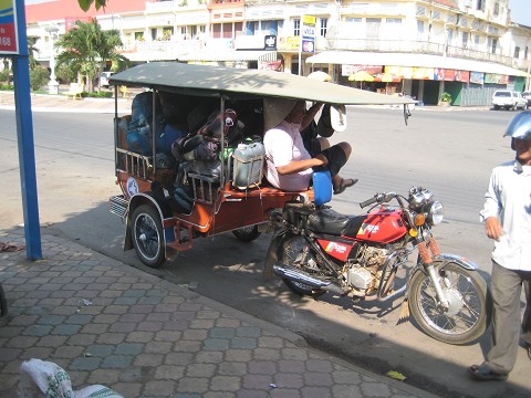 Penh. We get our bags off the bus and find three tuk tuks to take us