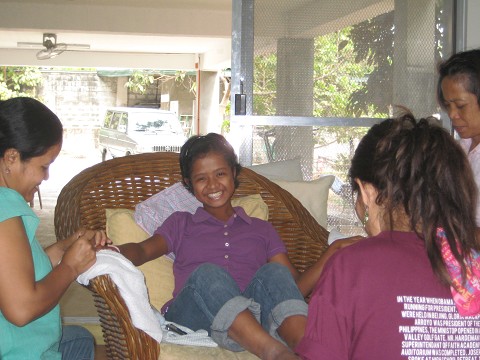 So, I brought Mary over and let her getthe royal treatment. The ladies painted her fingernails and toenails.