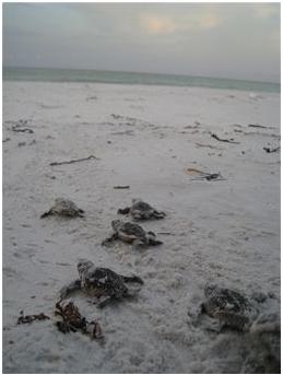 turtles hatch from their nests in the middle of the night and make the trek