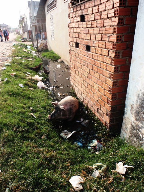 A pig soaking in trash-filled mud. It's quite possibly the coolest place in town.