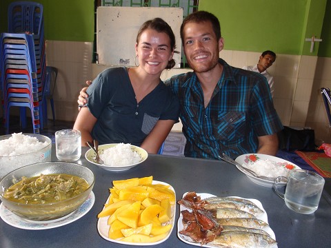 Ready for dinner! Typical Cambodian dishes are fish, meat and vegetable curry,