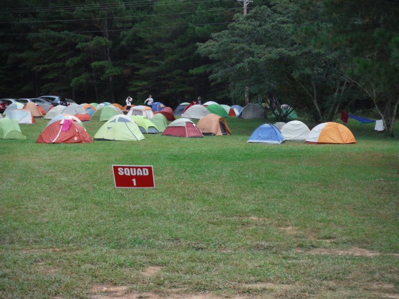 A 2 ½ hr bus ride to Tennessee and setting up our tents was the first of a crazy week! Have you ever seen over 200 tents? All 5 squads leaving in January were scattered throughout the camp making small tent towns. A damp 7am Sunday morning came quickly(or slowly depending on how much sleep you got) as we packed up our dew-covered tents and took a 30min hike with all our gear! We quickly found out how much we brought.