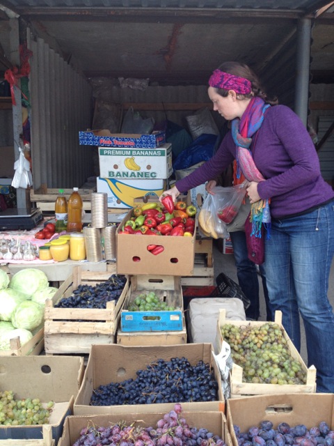 At the moment we have no refrigerator so we store our eggs, dairy, and chicken on a little shelf in the kitchen. So the cool nights really do have their benefit! We shop at local markets in the mornings to get fruits, veggies, and meat.