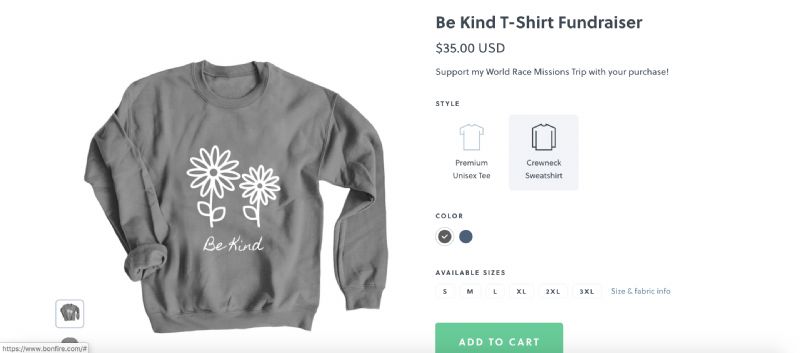 https://www.bonfire.com/be-kind-t-shirt-fundraiser/ – this link will take you to my Bonfire campaign page!