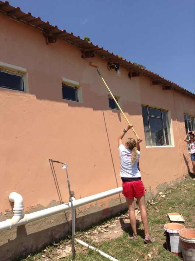 We spent our mornings working on projects around the property that included painting the exterior of most of the buildings and the roofs, painting murals in the new baby house, collecting debris around the property, and sorting and organizing donations that had been sent to the children's home. Due to a lack of resources, we got creative with the tools we used to complete some of the projects (hense the sticks in the above picture). It turns out that scrapping dirt and grime off the walls to prep them for a new coat of paint was an awesome opportunity to exchange testimonies and laugh about all things that would only happen in Africa.