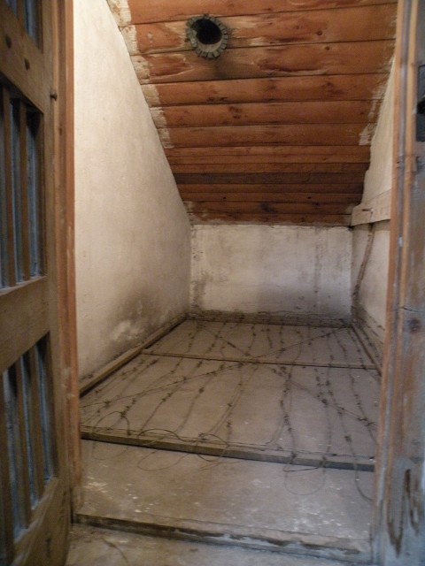 SOLITARY CELL IN CONCENTRATION CAMP: YES, THIS IS A BED MADE OUT OF BARBED WIRE.  YES, PEOPLE WERE FORCED TO SLEEP HERE.  YES, THIS REALLY HAPPENED, AND MUCH WORSE.