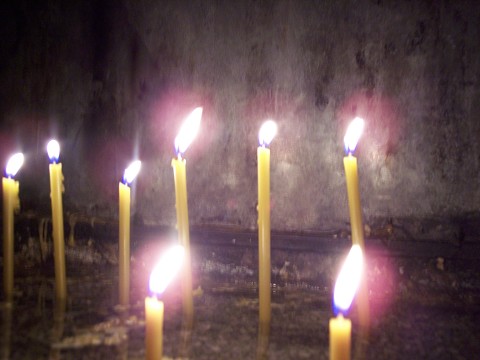 PRAYER CANDLES IN ORTHODOX CHURCH: MOST SERBIANS ARE ORTHODOX.  IN FACT MOST YOUNG PEOPLE IDENTIFY THEMSELVES AS ORTHODOX SIMPLY BECAUSE THEY ARE SERBIAN.  THE ORTHODOX CHURCH IS FULL OF MUCH TRADITION, PRAYING TO SAINTS, AND LOTS OF GRANDEUR (SOME LOVELY BUILDINGS & INTERIORS), BUT I CAME TO THINK OF IT A LOT LIKE THE PRAYER CANDLES… THE CANDLES BURN ONLY FOR A SHORT TIME, THEN YOU HAVE TO GO GET A NEW CANDLE & BURN IT AGAIN, OVER & OVER…  THIS IS NOT THE CHRISTIANITY THAT JESUS CAME TO BRING.  HIS LOVE ENDURES FOREVER.  HIS LIGHT NEVER GOES OUT.  THERE IS NOTHING THAT I HAVE TO DO TO ENSURE THIS.  IT JUST IS.
