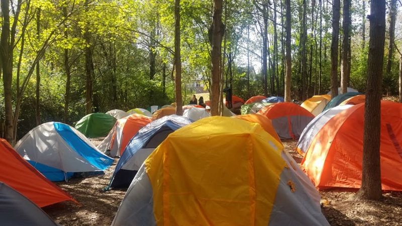 During this time in Gainesville, our squad had a designated campground for where we’d put up our tents and sleep at night. This camping included setting up my tent with my sleeping pad (like a mattress), sleeping bag, sleeping liner, and travel pillow. I really haven’t gone camping much before, so this was a new experience for me. Over the course of the ten days, I learned what worked and what didn’t work. I learned to look for flatter areas, so I didn’t catch myself in the middle of the night sliding to the bottom of my tent. (This did happen once or twice, but I learned to put my pack at the end to rest my feet on.) I learned to prepare my pack well, to know where certain clothes should be packed, to organize the supplies I needed, and what I actually used or didn’t use from my pack.