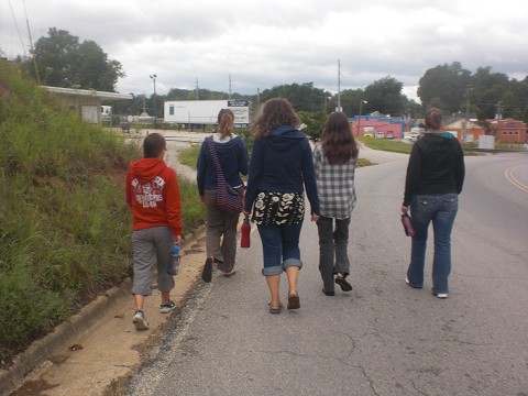 Walking to showers