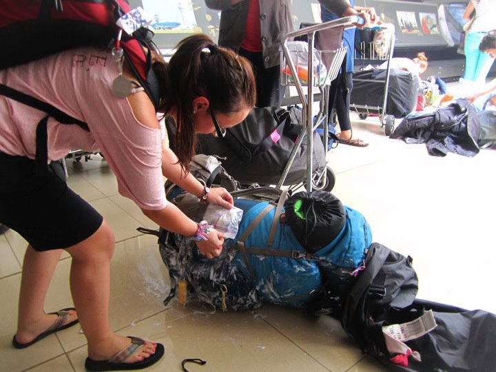 So finally after a couple days of travel, I see my pack coming down that conveyer belt, thankful that for the last three months I will have everything I need. As I begin to look at my airporter (the big duffle bag that protects our packs for travel) I notice that a strange liquid is seeping through the seams. As I began to open my pack I noticed that the bottle of shampoo had exploded. I began to take my pack out of the airporter and realized it was a bad idea, shampoo poured out onto the floor and over everything. I quickly zipped it back up and decided I’d take care of it once I got to the hostel.