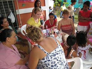 This past weekend we had the privilege to minister to kids…lots of kids! On Saturday we focused our efforts on helping the YWAM group with the block party that they had planned for the kids in their neighborhood. We set up tables for face painting and the princess station where little girls could get their hair done and nails painted. Brian, one of the YWAMers had a station where kids could through wet sponges at him…they all loved that station. We served hot dogs to all who came with Christian Spanish music in the back ground. The party was a hit.