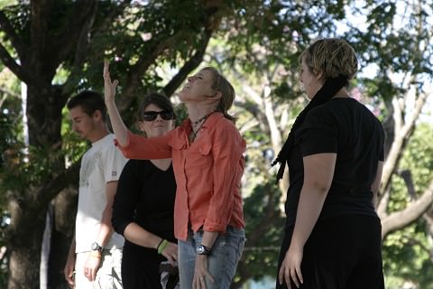 Sometimes the best way to love people is to tell them about the grace, hope, and love of Jesus Christ. We spent a day at the plaza, performing a drama and proclaiming the Truth. The drama is Set Me Free (by Casting Crowns), and shows the story of a girl (Kelly) tormented by the enemy (I play a demon, along with Michelle). Christ (played by Chad) is crucified and comes back to life, to save her from her chains and destroy the work of the enemy.Eric spoke to the people in the park about how following Christ is not about being a good person or even going to church. It’s about knowing Jesus Christ, personally and intimately. Several people came forward, wanting to begin that relationship.