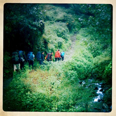 The hiking was intense and testing at times~ 3-4 hours uphill in the rain (& of course I forgot my rain jacket,) but I was thrilled to be out of the filthy polluted city & cramped living space and in the Nepalese nature I had envisioned for months. The views were amazingly beautiful as we crossed swinging bridges over raging river rapids and climbed steep mountain paths through vibrantly green terraced land, and I was so joyful for this much-needed get-away with my team.