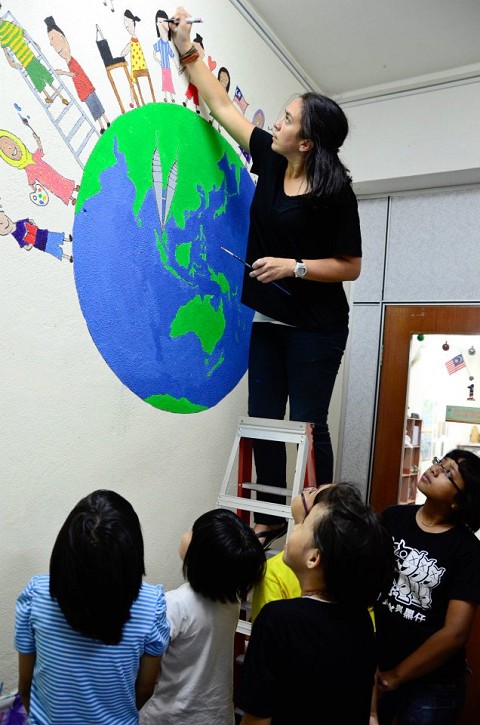 This month has been a bit of a struggle– we are in the middle of nowhere, a small rundown town in Malaysia, while other teams are frolicking on the coast and spending time on the beach. Fortunately (or in this case unfortunately) we have internet this month, which constantly reminds us of what we're "missing out on" in our remote location of Malaysia. Facebook can be such a wonderful way to stay in touch, but it can also be such a stumbling block for me, causing struggles with comparison, jealousy and ungratefulness. It's hard not to let my human nature get the best of me while Facebook stalking my friends and seeing all the fun they're having & simultaneously making myself a cup of instant oatmeal or a peanut butter & jelly sandwich for the 20th day straight. I constantly have to depend on the Lord to remind me of all that I am blessed with and all that I have to be so grateful for… to remind me of all the hurt and suffering I've seen over the last 9 months… to break my heart for those who don't even know Him. It still never fails to amaze me how selfish and shallow I can be as a human. I've been challenged in my motives, my obedience and my faith. But the Lord has given me so much peace and so many blessings this month, including the opportunity to spend some time painting a mural for the center and doing art with the kiddos.