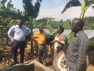 I’ve been the most impressed with our host, Enoch, this month. Enoch doesn’t have his own church building, but he does an incredible job reaching out to the community and educating his neighbors and others in the community in life skills and how to be self-sustaining. One day, our team and a group of farmers in the community went to the property of a woman named Susan, who is also a farmer. She has an incredible piece of land where she grows banana plants, coffee beans and other crops. She also uses the manure and urine from cows as bio-gas (don’t ask me too much about this because I probably couldn’t answer any question). All I know is that we use this gas to cook with (again, not as bad as you might think) and it’s something that Enoch is encouraging others in the community to do as well. I love that Enoch doesn’t limit his ministry to those in the church but is passionate about educating and reaching those outside the walls of the church. I feel very fortunate to have met him and Constance this month. Here’s a picture of Enoch (on the right) when we were at Susan’s farm.
