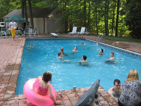 Before we left Raleigh, my parents threw us a luau send-off party, where family and our Fellowship Raleigh friends came over for some BBQ and swimming. We had a blast, but sad to know it was the last time we’d see most of them before we left.