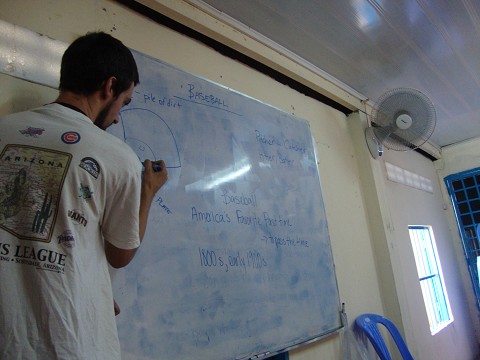 We found out that Cambodians aren’t into baseball. Matt and I came up with a great plan to teach these students about the greatest  sport known to man. One of our best students, Chamran, bursted our bubble when he interrupted us by saying, “This is not interesting.” Crazy.