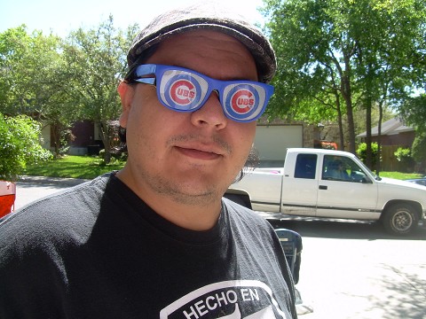 One of my former bosses Javier and his wife Erinn also helped that day, bringing breakfast tacos, selling, donating and even modeling some of the merchandise. 🙂 Here, Javier is modeling my Cubs sunglasses. I’m still baffled at why nobody would want to buy them! They’re still for sale if we have any takers.