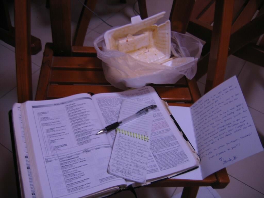 So on my way home I’m wondering what I should do with this insight since I’m feeling inspired to be in remembrance. Easter is Easter of course, but I don’t think I’ve ever given much thought to the actual last supper, except as it’s demonstration of communion. My first thought is to pick up some take out so I don’t spend the next hour cooking dinner, so I stop at my favorite restaurant. I checked the mail on the way up to my apartment, and sitting there is an envelope that for once isn’t covered in indecipherable Chinese characters that indicate another bill to be payed – it’s a personal letter! I sat down with Dad’s Word out so I could do some reading over dinner, got my food ready to be eaten, and opened the envelope. Inside was a birthday card from Sarah Burrows, fellow world racer and all around pro at making you feel loved. If you’ve never had the blessing of getting a word of encouragement from her, you’re missing out on years worth of warm fuzzy feelings.