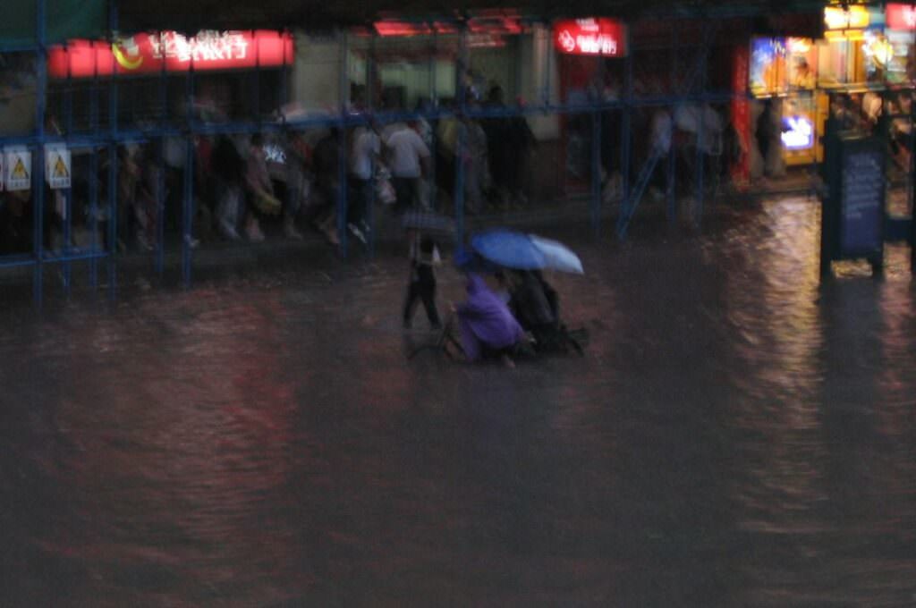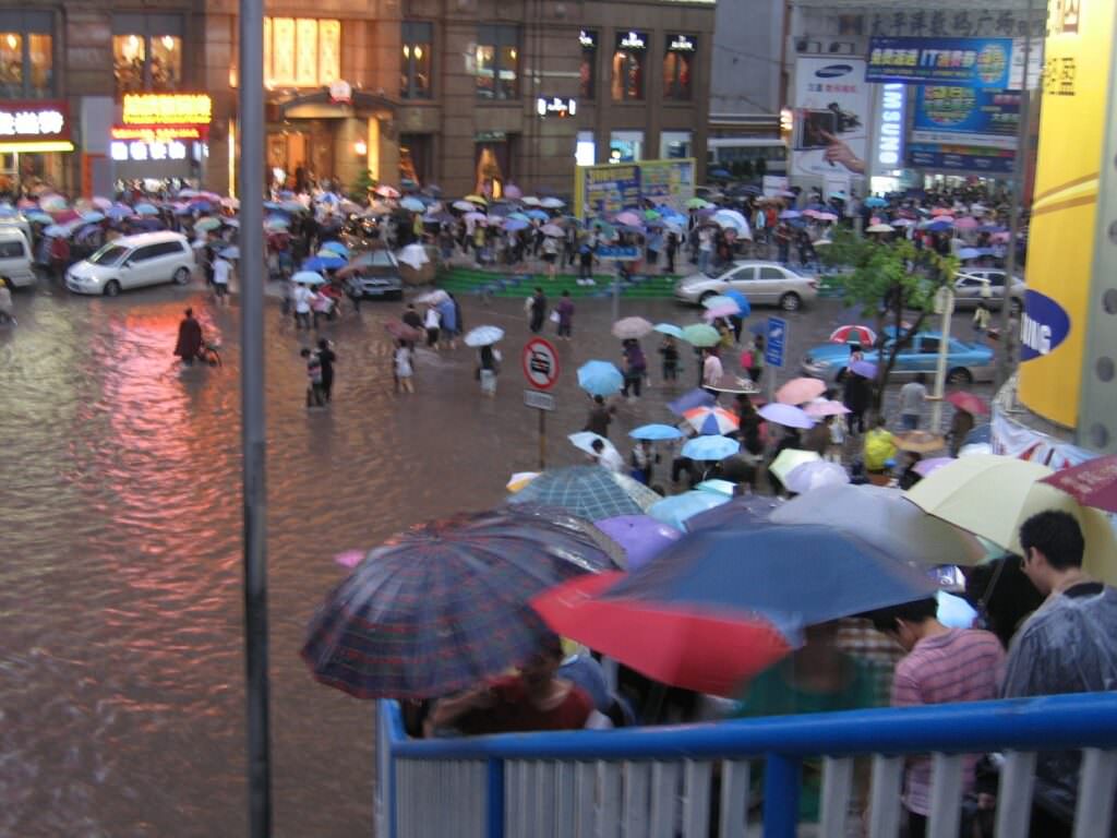 A few days ago my friend here was telling me how much they hated the rain. Growing up I was never a fan, but these days when people say that I always think of the quote, “Anyone who says sunshine brings happiness has never danced in the rain.”Cause I really do think we grow up disliking rain because it means we can’t do certain things, but never take advantage of the things you can only do in the rain. Though there are plenty of applications for such thinking, today I just have a story: Yesterday I went into town to pick up my camera, which I finally got fixed (yay!), and then out to enjoy a free piano concert with my friend Shirley. While inside some stores, it started raining. My first clue that it might be really bad outside was when, while on the 3rd floor of a shop, someone opened a door to what was an exterior stairwell to discover it had turned into a waterfall. That still didn’t prepare Shirley and I for what was waiting down in the street for us – a few city blocks had become a shallow lake, stopping traffic in all directions and forcing everyone to the dry strips of raised sidewalk, and we were on the island in the middle. There were hundreds of people trying to stay on the sidewalk, mere inches above the water line, while everyone was also trying to move in one direction or another. It was as bad as being front and center at Edgefest. Of course we needed to get off our little island, so we fought through the crowds and at each road crossing, pants rolled above my knees (though in the end that wasn’t enough to keep them dry), with Shirley on my back holding my phone, shoes, and camera up out of the water and an umbrella over our heads, I waded through the filthy water to get us to a hot meal, a piano concert, and then home.