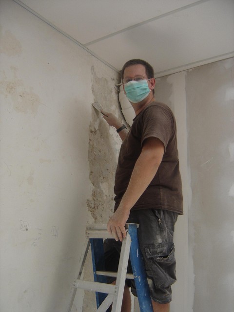 Helped with rennovations upstairs of the drop-in center-scraping paint.