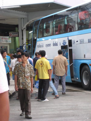 I am in Chang Mai Thailand as I write this. I met up with the rest of the guys for Manistry (ministry + men= Manistry) in Bangkok on Sunday. We headed out to Chang Mai on Monday evening. We took a bus for the 11 hour ride. Now before you get an idea of what you think our trip was like I need to tell you about the buses in Thailand. Our bus had TV’s in the front with speakers throughout so we could watch a movie. Unfortunately the movie was Mr. Bean on holiday, which is bad enough, but it was also in Thai. They had in “flight” meals, beverages, and snacks. Our ticket price even included a stop at the Thai version of a midnight diner were we got to eat. In general this bus was nicer than the plane I took from Phuket a few days ago. It even had “flight attendants”. All this luxury was included in our $16.00 ticket price! The only bad part of our trip was at about 4:30 am our bus stopped on the side of the road and we sat broke down for an hour.