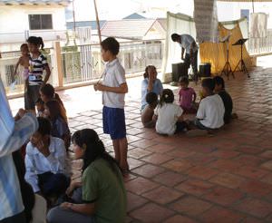 We sang songs and they did a bible lesson on what I don’t know because I don’t speak the language. I did puppets and helped with getting the music ready.