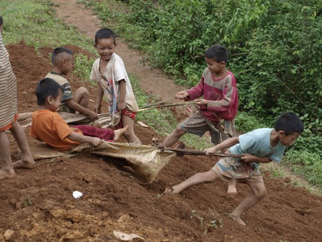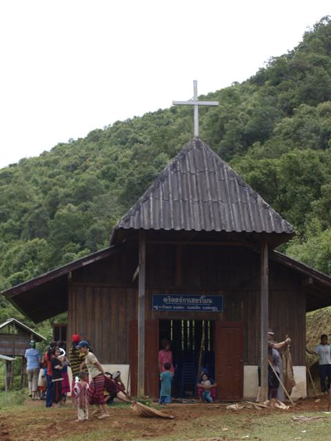 Today the entire community claims to be Christian.  Had I not heard the stories of the past being plagued with drugs I would have never guessed it.  As I write this blog, I hear someone crushing rice (it’s a process that does something to the rice…but I don’t understand what they’re doing…sorry) with a wooden contraption that is made seemingly by hand.  I hear Thailand cowbells…carved out of wood.  I see huts with thatch roofs, dirt paths, people walking everywhere.  But I see more…I see people interacting with each other, which just a few years ago was unheard of as the villagers didn’t trust each other at all…but now they do.  I see happy people.  I see people wanting to tell you stories of the past.  I see a church, that was planted just 8 years ago, yet has transformed the entire community…even the witchdoctor has turned ways and told his story at church the other day.  I see kids laughing and playing in the dirt…like kids should do.  I saw many if not most of the community come together on the church work day to help maintain the church building and property.  I see a community that has come together to become better…I see God’s love and grace come alive.  I see Christ’s examples lived out.
