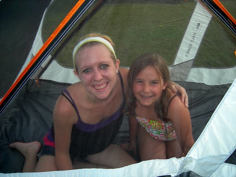 Wow, how I’ve been blessed today! The Jacobs, some friends of the family that date back to…well, before I was born!…came over for food & fellowship. I have to tell you, it was so refreshing to see them again. The last time I saw their entire family together was probably 8 years ago due to their move to Idaho, so a get-together was long overdue. Little Autumn (who really isn’t little anymore at the grown-up age of 10) was my buddy for the day, and an excellent helper in setting up MY NEW TENT!! I’ve had this sucker for a couple of weeks now, but wanted to share the excitement of setting it up for the first time with someone special. I couldn’t have asked for a better special someone than Autumn!