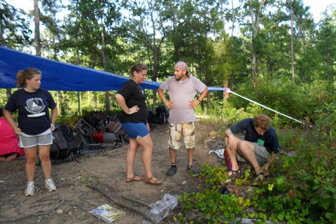 Now I know this may be TMI for most of my readers, but I wanted you to know how much God has been stretching me this week! At 3 o’clock on Tuesday, our leaders told us that we had 30 minutes to pack up our things, 2 people per backpack, and prepare for an indefinite campout…without tents of course. You see, part of going on the World Race is not always knowing what is coming, and preparing yourself to be flexible if sudden changes in plans occur. So all 39 of R-Squad squeezed into 20 packs, grabbed some supplies, hiked for 45 minutes through the woods, canoed across a lake, and found ourselves at our designated campsite. Where there was, of course, no bathroom.